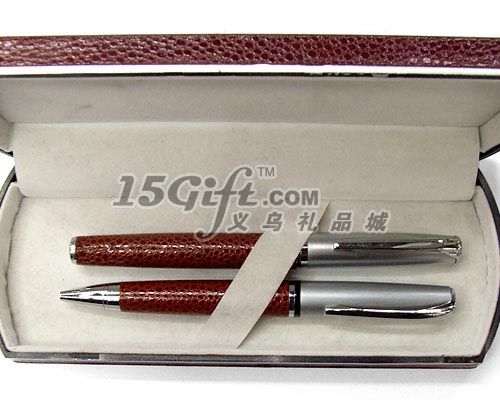 產(chǎn)品材質(zhì):銅 一支圓珠筆、一支簽字筆,包裝:單個禮盒包裝(內(nèi)塑料外PU革),可根據(jù)不同的需求制作商標(biāo),高檔大方