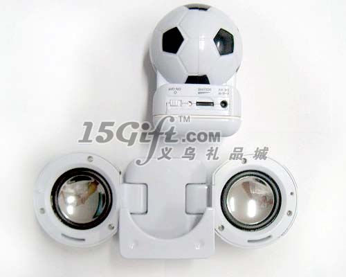 材料:ABS 便攜式迷你音箱,便攜式足球迷你音箱,適用于iPod, MP3,筆跡本電腦及手機,PDA,MDA.電源: USB5V,DC6V(4XAAA電池)或直流電源 喇叭:4 歐2瓦 功率:1W x 2 頻響:80Hz - 18kHz(彩盒包裝)可帶USB電源端子