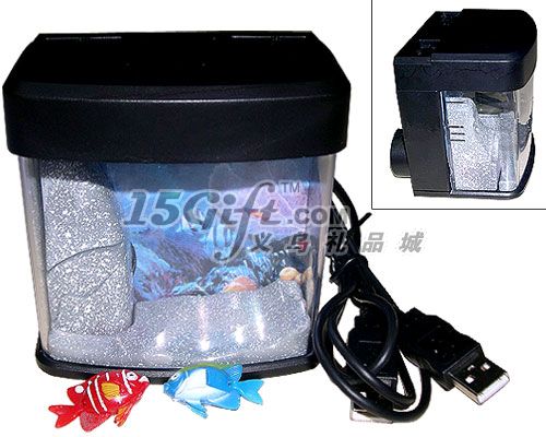 產(chǎn)品說(shuō)明:適用于任何USB接口的筆記本電腦、桌面電腦等,魚缸頂部有兩個(gè)開關(guān)。可自行選用AA電池或USB 供電,頂部有一利用AA電池供電的LED彩燈,在魚缸中加滿蒸餾水,放入塑料小魚,啟動(dòng)水泵后, 兩條小魚隨著水流在假山間游動(dòng),逼真可愛。