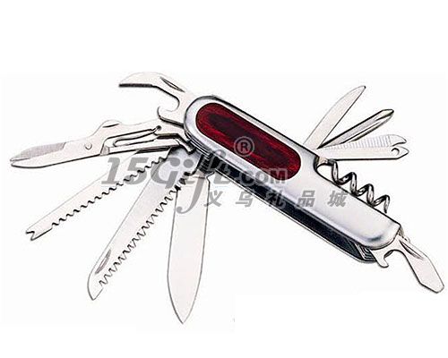 長(zhǎng)度:4.50㎝功能:1、大刀2、小刀 3、開(kāi)罐器,兼附:4、開(kāi)瓶器,兼附:5、一字螺絲批 6、微型一字螺絲批7、鑰匙環(huán)8、剪刀9、鎜刀10、指甲銼,兼附:11、鋼鋸毛凈重:29/28(KG)包裝方式:獨(dú)立PP袋+白色紙箱 240PC/CTN包裝規(guī)格:26.5X21X34.5CM起訂量:1000把