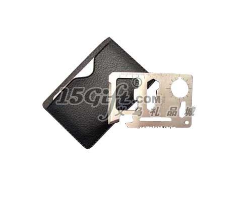 1: 產(chǎn)品廣告面積大; 產(chǎn)品長7CM2: 便于攜帶; 約重35克, 3: 功能多樣; 1、開罐器 2、削皮刀 3、鑿刀 4、尺子 5、開瓶器 6、大中小扳手 7、起釘器 8、鋸齒刀 4: 產(chǎn)品采用優(yōu)質不銹鋼(2鉻13)經(jīng)久耐用,塑膠。 包裝方式:每個產(chǎn)品入皮套,400把入外箱(或按客戶要求)包裝規(guī)格:外箱尺寸;26*24*19CM毛凈重: 14/13KGS