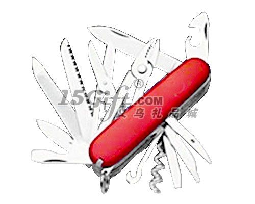 13功能仿瑞士軍刀產(chǎn)品長度:合91mm/伸200mm產(chǎn)品材質(zhì):5Cr15MoV毛重/凈重:22/21(KG) 包裝方式:獨立PP袋+白色紙盒 外包裝尺寸:100PC/CTN:33X27X18.5CM起訂量:500PCS (開刃技術(shù)采用美國巴克刀開刃技術(shù))(硬度:58~62HRC)(特殊熱處理以及低于零下180攝士度深冷處理,在保證硬度的情況下具有更強的韌性)