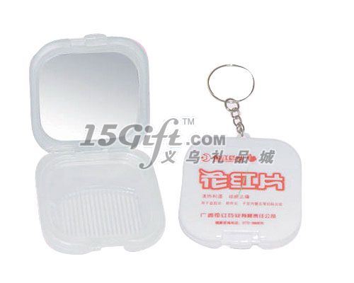 方形帶鑰匙扣單面鏡,內(nèi)附梳子一把,塑料材質(zhì)。