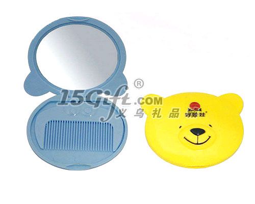小熊卡通單面鏡,內(nèi)帶一把梳子,塑料材質(zhì)。