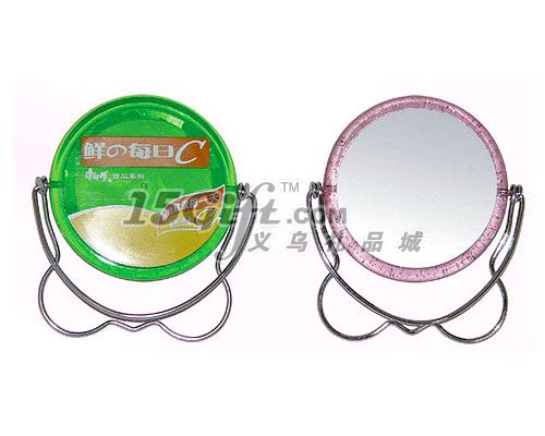 鐵框圓形小臺鏡,塑料、鐵材質(zhì)。