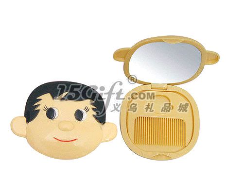 小男孩卡通單面鏡,內(nèi)有梳子一把,塑料材質(zhì)。