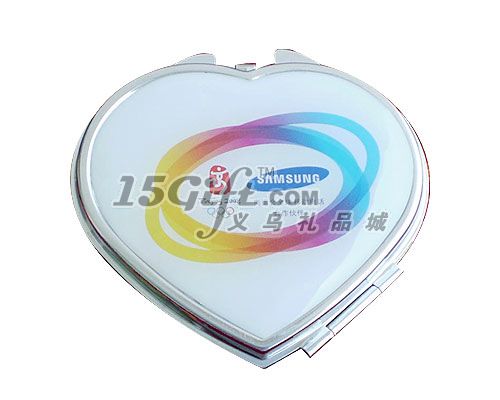 心形金屬工藝鏡,一面是平面鏡,一面是放大鏡。材質(zhì):鐵鍍鉻。