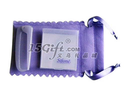 塑料材質(zhì)的套裝鏡,方形單面鏡,可當(dāng)臺(tái)鏡使用;折疊梳。
