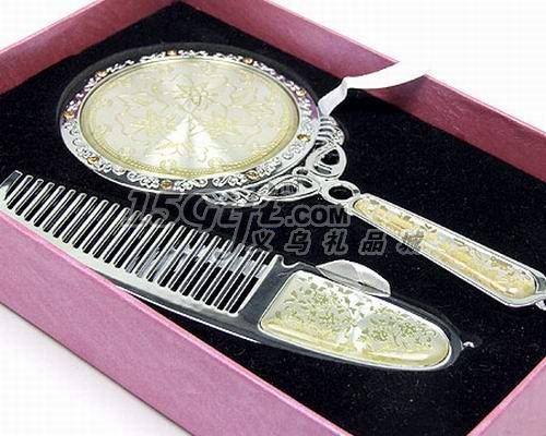 金屬材質,鏡子尺寸:14.8*6.9*0.5cm,梳子12.3*3*0.3cm,盒子11.6*17*3cm。