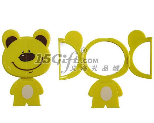 產(chǎn)品尺寸約:13.3*8.3cm,單opp袋包裝。可愛的頭部打開是三面鏡子,頸部可折疊,可當臺鏡使用。可做贈品。