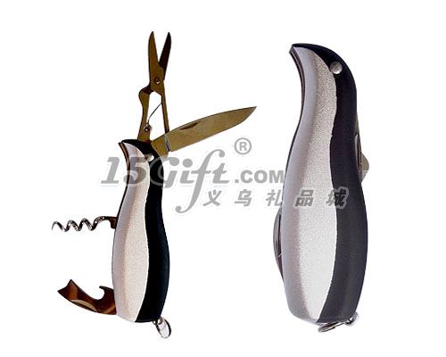 功能;剪刀,小刀,開罐器,紅酒開瓶器不銹鋼企鵝小刀,外觀精美,小巧精致,方便實用,是居家,旅行,促銷禮品的最佳選擇。
