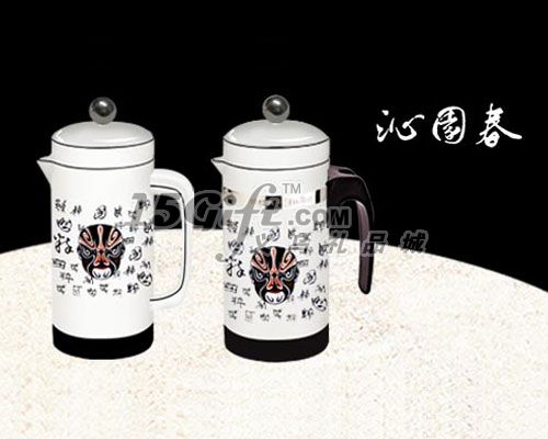 產(chǎn)品為新一代沁園春泡茶器,外觀顏色為黑白相間,并坐上中國特有的京劇臉譜,產(chǎn)品有連柄和組柄,連柄可以少2元。高檔精美盒子包裝,是家居用品、禮品贈(zèng)品的有一創(chuàng)意選擇。