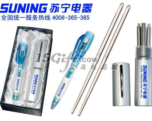 不銹鋼筷子商務(wù)套裝:一個(gè)帶燈筆和一雙不銹鋼筷子,外面一個(gè)禮盒包裝,產(chǎn)品上可以制作商標(biāo),歡迎前來(lái)咨詢(xún)訂購(gòu)