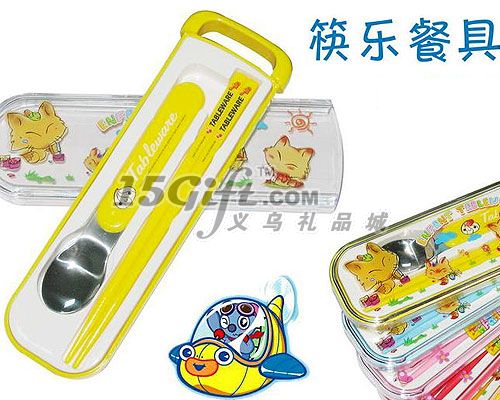 兒童餐具2件套:一個(gè)塑料盒包裝,內(nèi)一雙塑料筷子和一只不銹鋼勺子,產(chǎn)品上可以制作商標(biāo),歡迎前來咨詢訂購!