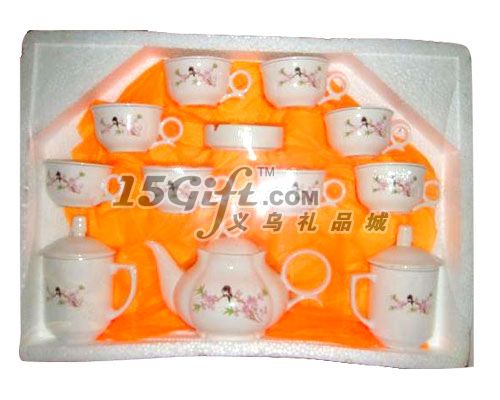 產(chǎn)品包含八個茶碗,兩個蓋杯,一個茶壺,一個煙缸,普遍用于各種廠家和公司單位作為贈品回饋顧客,價格最優(yōu),實惠