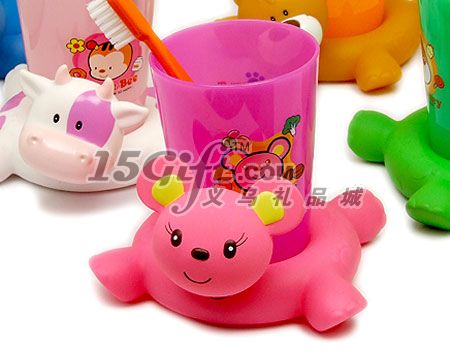 顏色鮮艷的動物彈弓杯座套裝,動物頭部與杯子之間連著一根彈弓,當輕輕搖動物的頭部時就會擺動,為刷牙增添樂趣,是一種受小朋友歡迎的浴室用品,另有6款動物圖案和顏色不同的杯子,牙刷供您選擇.