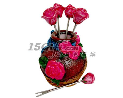玫瑰花瓶水果叉