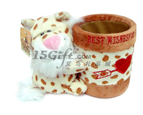 小型毛絨卡通筆筒, 采用普通毛絨料, 做工細(xì)致、造型新穎。適用于家居辦公。
