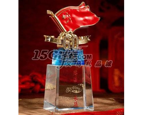 水晶底座,紅旗飄飄,適用于國慶60周年商務禮品。