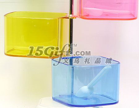 1.調(diào)味盒的整體設(shè)計(jì),四個(gè)獨(dú)立盒每個(gè)可旋360度,均是進(jìn)口透明材料;方便看到里 面盛放的調(diào)料。