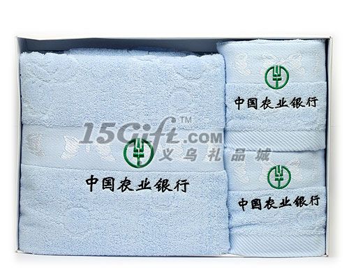 中國農(nóng)業(yè)銀行毛巾套裝,浴巾70*140cm 400g 毛巾34*76cm 100g 包裝精美,做工精細,可定制客人LOGO, 歡迎來電訂購!