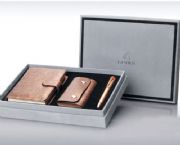 筆記本高檔的皮料,雙包邊處理,金屬名片盒上貼皮平整,手感極佳的黑色植絨吸塑,高檔灰色進(jìn)口植絨包裝紙的外盒。