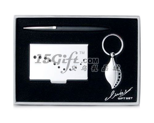 包含的產(chǎn)品:金屬名片盒;鑰匙扣;筆。