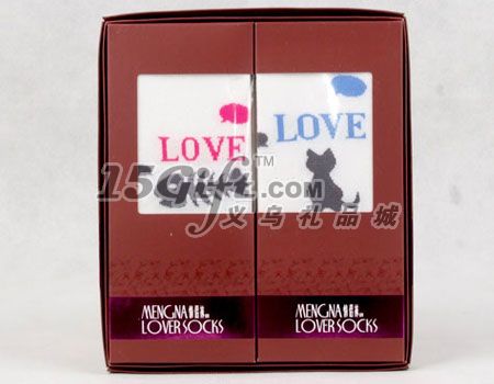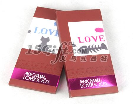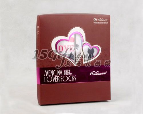 夢娜情侶襪由一雙女船襪和一雙男船襪組合起來,襪子分別單獨裝入一個紙盒子,然后再放入一個大的紙盒,男襪的規(guī)格:24-26CM,成分:65.7%棉 32.3%滌綸 2%氨綸,女襪規(guī)格:22-24CM,成分:72.5%棉 25.5%滌綸 2%氨綸。盒子的尺寸:22.8*19.8*2.5CM,盒子可以按要求設(shè)計商標(biāo),