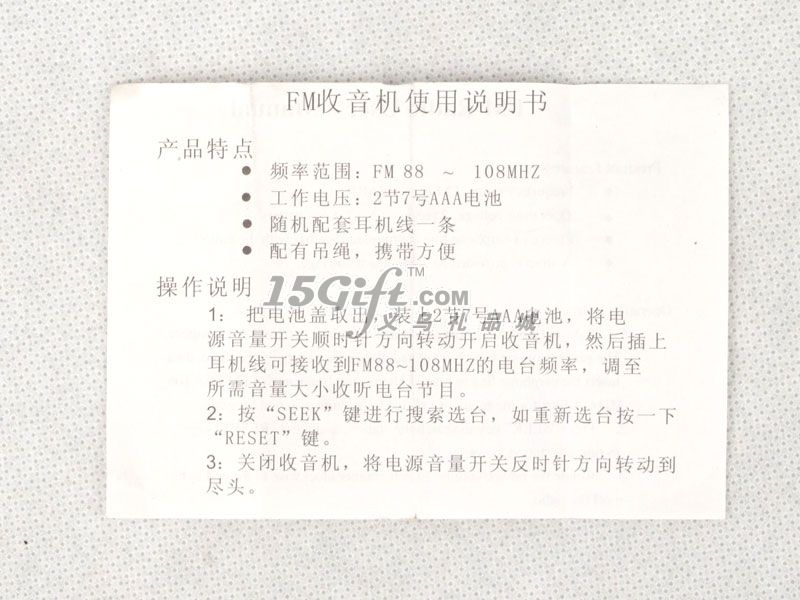 1:產(chǎn)品單個(gè)彩盒包裝,附件配一個(gè)耳機(jī)、說明書和一根繩子,產(chǎn)品上面可以按要求制作商標(biāo),產(chǎn)品的功能和使用說明請(qǐng)看附圖里面的說明書。