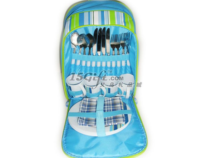 材料:600*300D聚酯大小:29.5*18*39.5附件:4*刀子/叉子/勺子塑料 4*9 三聚氰胺的晚餐 4件棉花餐巾紙 4*pc酒杯