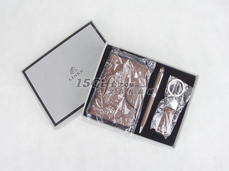 高檔商務(wù)套裝三件套:高級(jí)真皮鑰匙扣包(可以放鑰匙,放零錢,放證件),高級(jí)真皮鑰匙扣,高級(jí)圓珠筆。非常適合商務(wù)贈(zèng)送,產(chǎn)品可根據(jù)客人要求定做LOGO,歡迎來(lái)電訂購(gòu)!