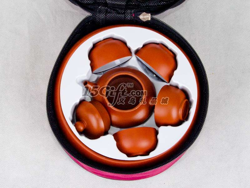 紫砂旅行茶具:由紫砂茶盤,一個100ML紫砂茶壺,4個30ML紫砂杯裝入一個600D的袋子里面而成,產(chǎn)品上可以按要求制作商標(biāo)!歡迎前來咨詢訂購!