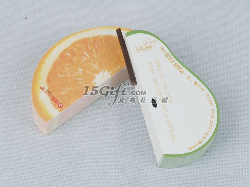 水果便簽紙,橙子,蘋(píng)果,梨等水果造型圖案,新穎實(shí)用,可以印制客人LOGO,歡迎來(lái)電訂購(gòu)!