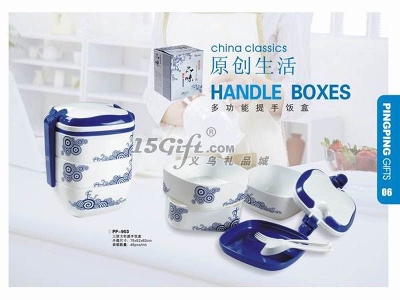 三層正方形提手飯盒