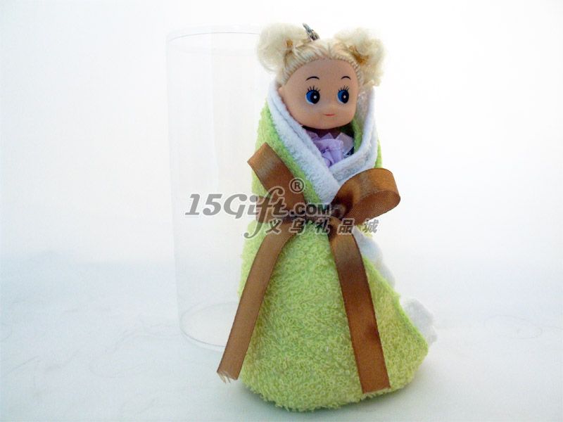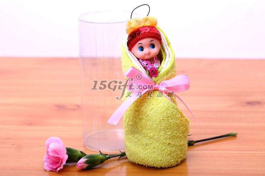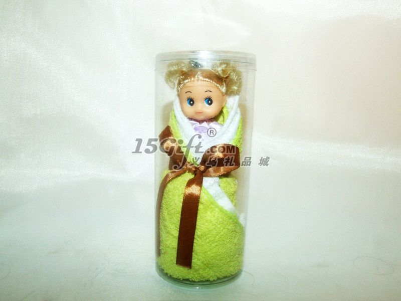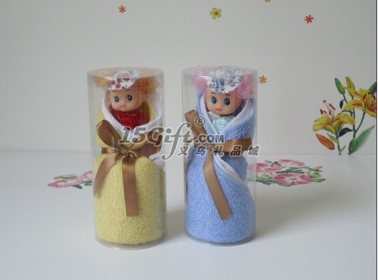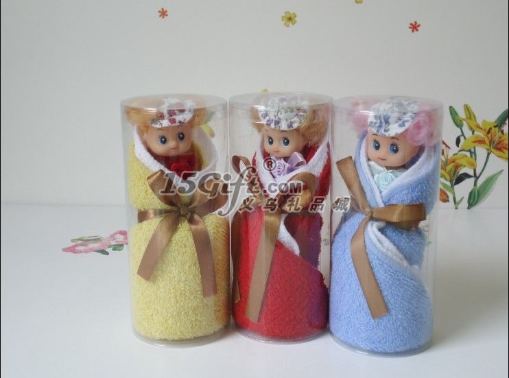 包裝:PVC圓筒 100%純棉毛巾(毛巾+仿真娃娃)毛巾20*20CM2條