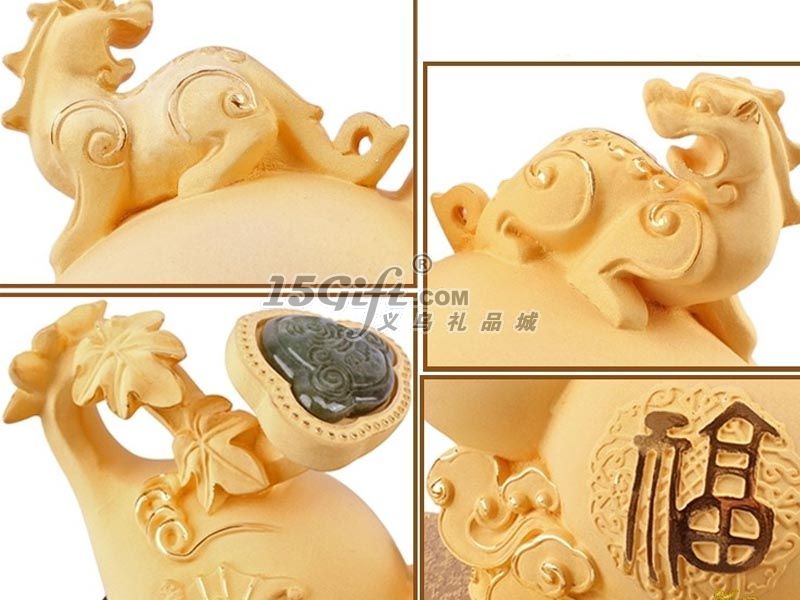 葫蘆同音福祿,藤生如意,寓意福祿如意,貔貅立于上,聚財(cái)生福,寓意富貴一生,福祿雙全。