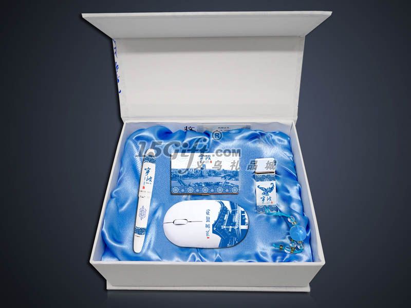 產(chǎn)品內(nèi)容:無線鼠標、名片盒、u盤、商務(wù)筆。禮盒,手提袋包裝。