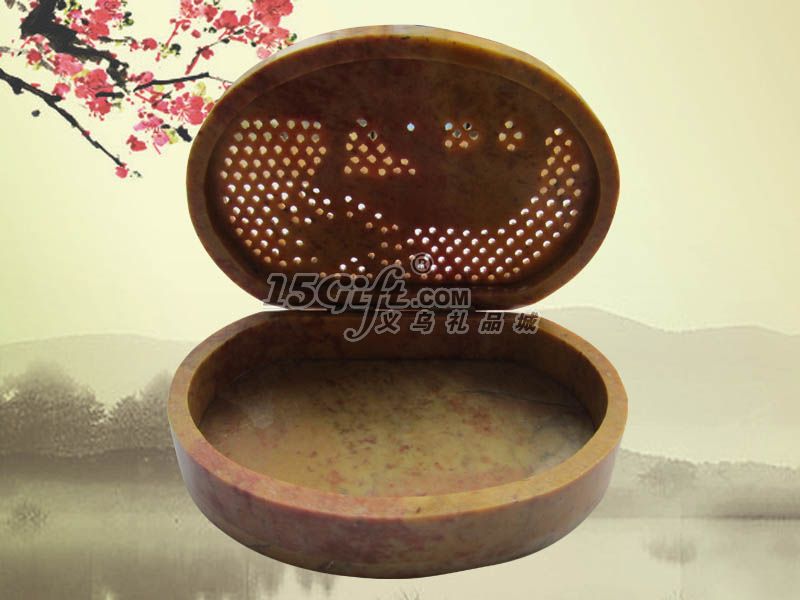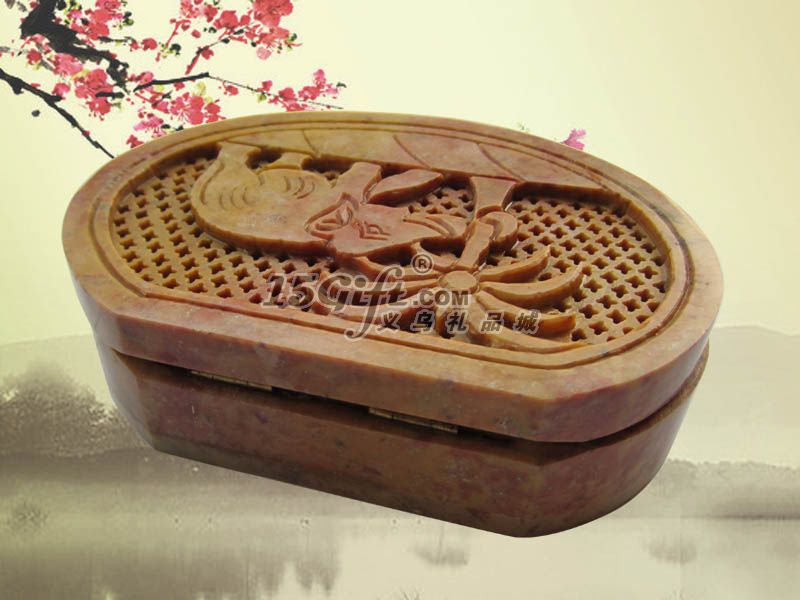 天然青田石雕刻首飾盒