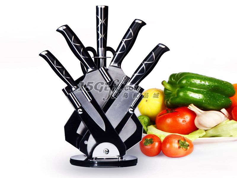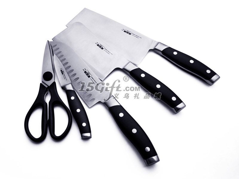 配置:斬骨刀、切片刀、小廚刀、水果刀、廚房剪、磨刀棒、刀座