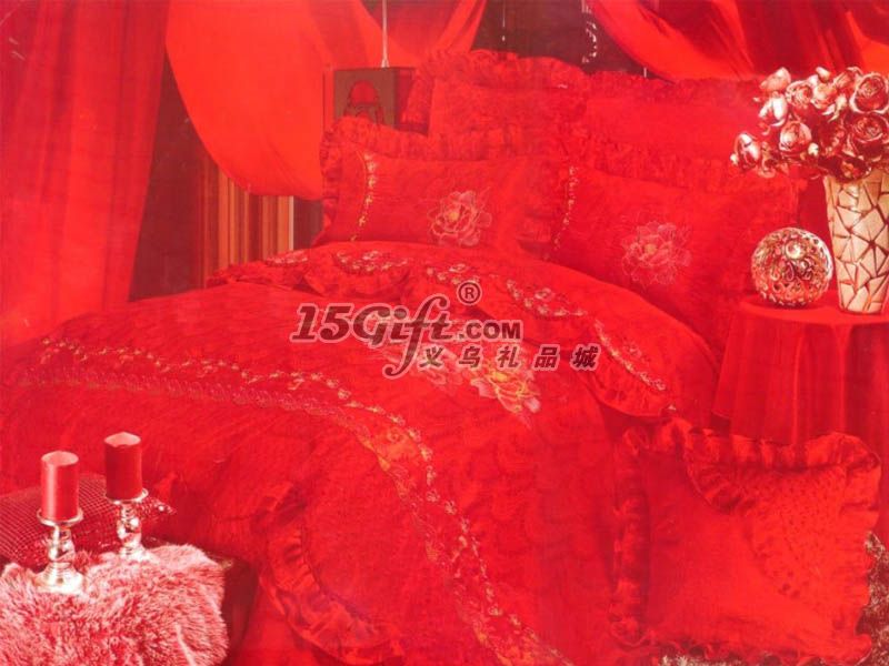 產(chǎn)品說(shuō)明:喜慶良緣八件套本產(chǎn)品采用100%斜紋純棉,高支高密精梳而成,面料親膚貼身,柔軟舒適,透氣性能好.本產(chǎn)品以純正的中國(guó)紅為首選,大紅的喜字刺繡,寓意著吉祥、喜慶,大紅色的件是每一對(duì)新婚夫婦必買(mǎi)的床品,這是一個(gè)根深蒂固的民俗床單和雙人枕采用絎繡工藝,歐式圓角設(shè)計(jì),看起來(lái)更結(jié)實(shí)大方,顯得更有垂感。八件套為床品里高檔大件套的組合方式,配置齊全,實(shí)物比圖片漂亮,一定會(huì)讓你愛(ài)不釋手!是您結(jié)婚送禮最佳首選!