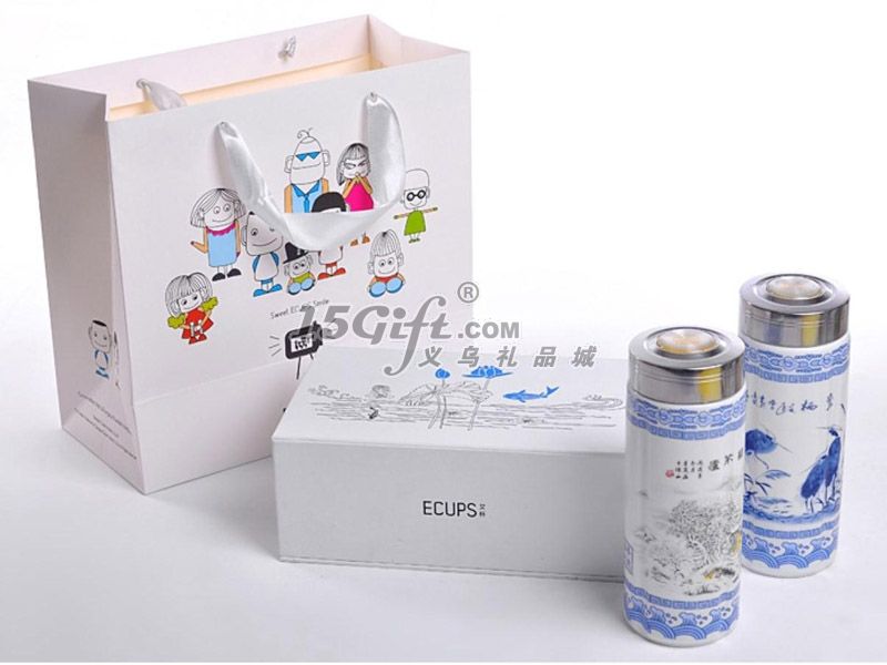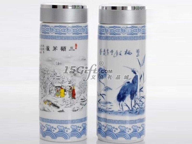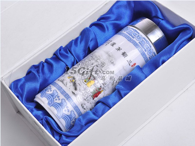 國色天香雙層青花瓷保溫禮品杯