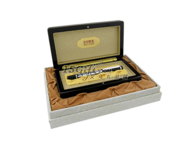筆桿選用高級珍貴樹脂賽璐璐;筆尖14K金;筆夾白金包飾;螺旋式進口墨水膽包裝介紹:外盒表面為黑色紙板,內(nèi)盒為椴木,內(nèi)襯為金色面料