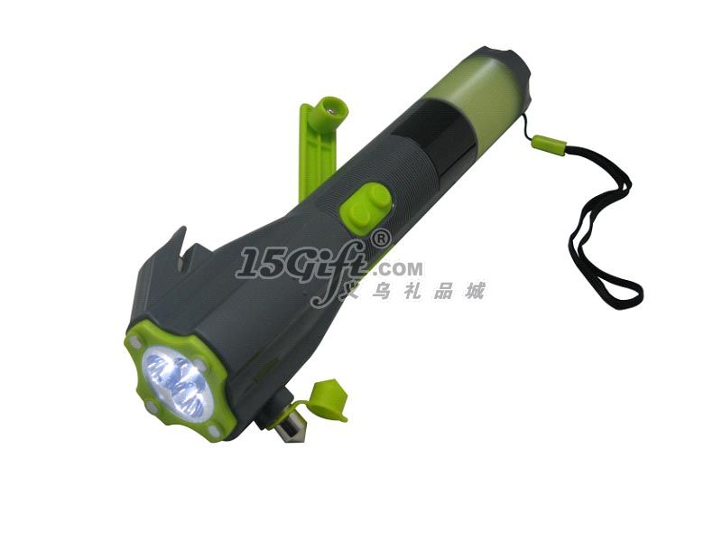 產(chǎn)品介紹: 1.手搖發(fā)電、手搖可給手機及數(shù)碼產(chǎn)品充電 2.3顆超亮LED 3.閃燈警報. 4.帶逃生錘、指南針、可割安全帶 5.帶磁鐵 6.防雨等級:IPX4-IPX5 產(chǎn)品規(guī)格: 1.材質(zhì):ABS、PS 2.LED燈的規(guī)格:¢5; 白發(fā)白2500mcd/白發(fā)紅500mcd; 3.電池類型:聚合物鋰電電池 120mAh 3.6V 4.手搖1分鐘(120轉(zhuǎn)/分鐘):a)照明可用25分鐘 b) 報警可用30秒鐘. c)手機接聽可用20-40秒,待機可達10-20分鐘