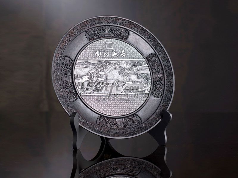 文化內涵 木雕工藝在中國有著悠久的歷史,它廣泛運用于家具及民間工藝用品之中, 并作為一種獨立的藝術形式而傳承著。 純錫浮雕裝飾用在傳統(tǒng)的紅木雕花盤上,賦予了作品新的審美含義,紅木的古樸厚重與純錫的內斂典雅達到了完美的統(tǒng)一,使作品層次分明,寓意深刻,將中國式的內斂美學展現(xiàn)得淋漓盡致。情感表達: 吉祥祝福、春節(jié)祝愿、品味珍藏。營銷定位: 商務禮贈、親友饋贈、節(jié)日祝福、企事業(yè)單位紀念性禮品。可特制地方: 盤正面、背面、錦盒手提袋均可特制。