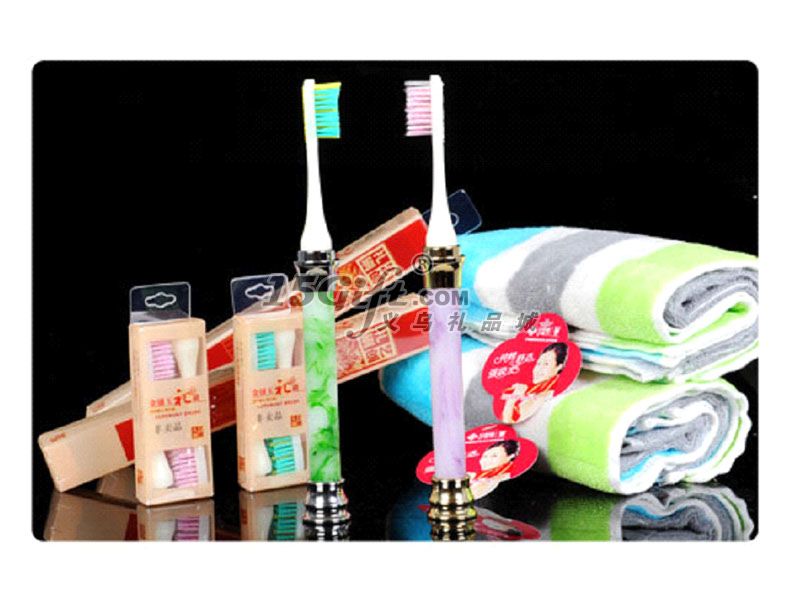 包裝說明:中性紙箱 1箱40套裝套裝配置:2條毛巾 2只禮刷手柄 6個可更換式刷頭 禮盒1套