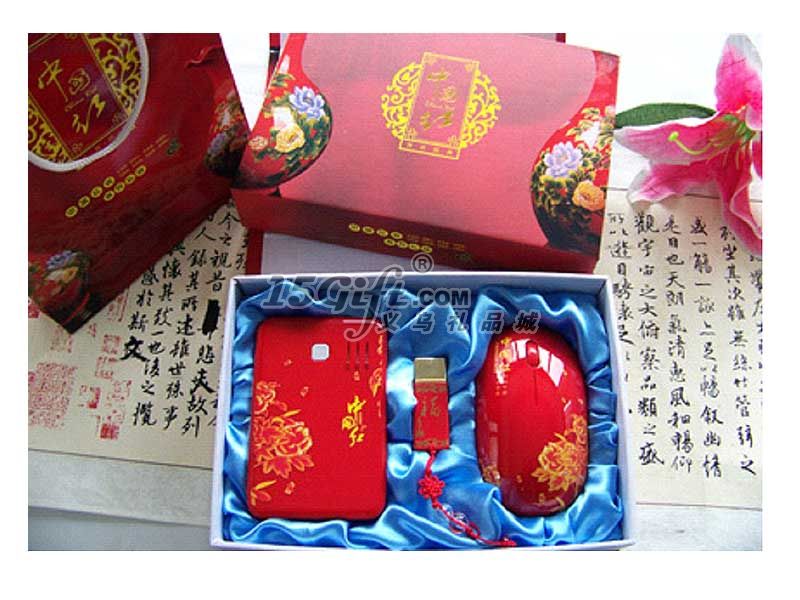 中國紅電源+中國紅福字4G U盤+中國紅鼠標