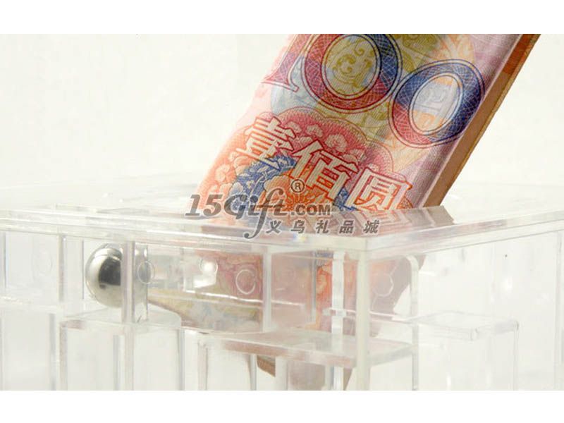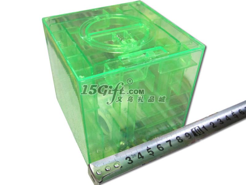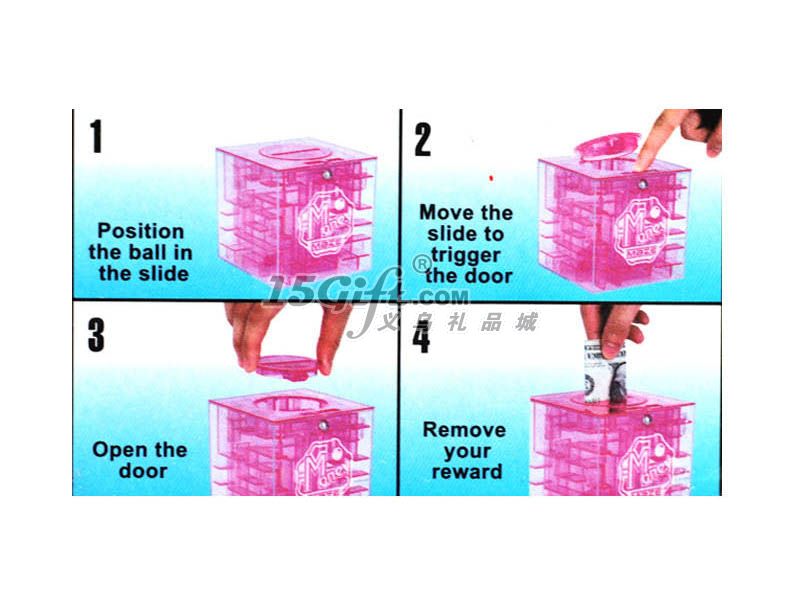迷宮開啟需要耐心,快則3分鐘首次可開,慢則5分鐘以上方能打開,熟練后1分鐘左右即可開啟。迷宮頂端有一直徑為5.5cm的圓蓋,小球走完迷宮推開圓蓋機(jī)關(guān),此蓋即可開啟。圓蓋中央有一4.5cm的長縫,可將硬幣,紙張,紙幣等等物件在不開啟圓蓋的前提下放入儲蓄罐中,達(dá)到存放目的。儲蓄罐的材質(zhì)為硬質(zhì)透明塑料。