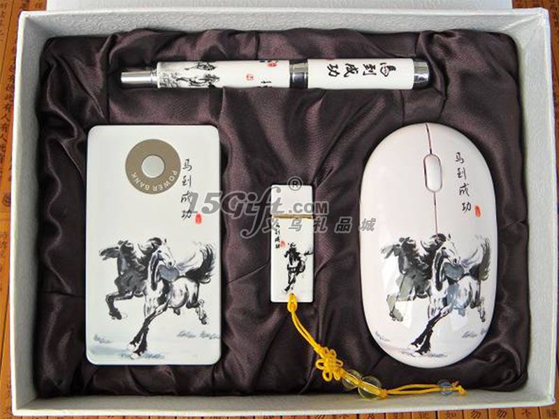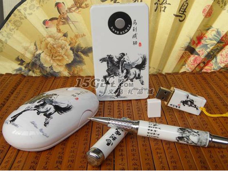 馬到成功6600MA移動電源+無線鼠標(biāo)+陶瓷筆+U盤