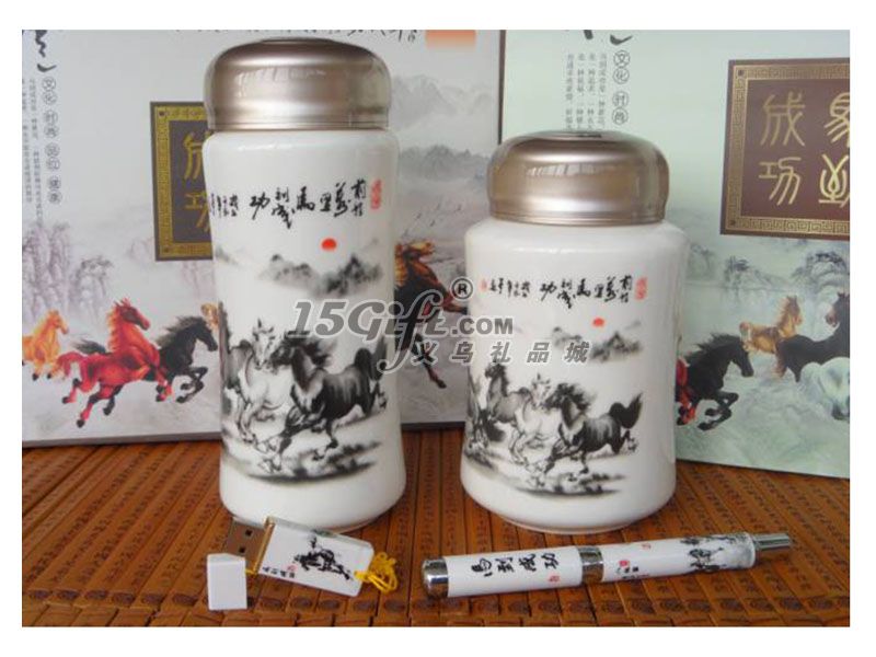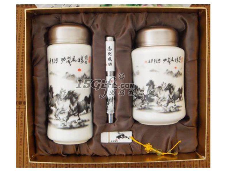 馬到成功陶瓷杯+茶葉罐+陶瓷筆+陶瓷U盤
