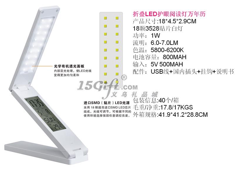 折疊LED護眼閱讀燈萬年歷